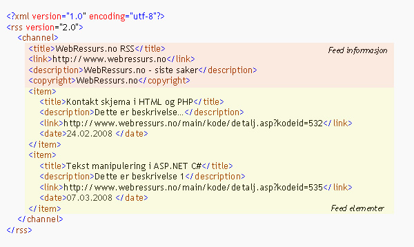 rssFeed.WriteElementString("copyright", "Copyright 2003 - 2008 WebRessurs.no. All rights reserved.");